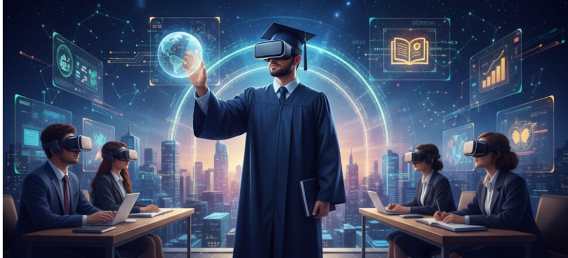 A complete digital educational ecosystem combining university learning, technology, and lifelong education.